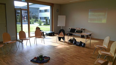 Auch werden auditive, visuelle, olfaktorische und gustatorische Angebote gemacht. Der Raum gestaltet sich an den Bedürfnissen und Möglichkeiten der Klienten orientiert.